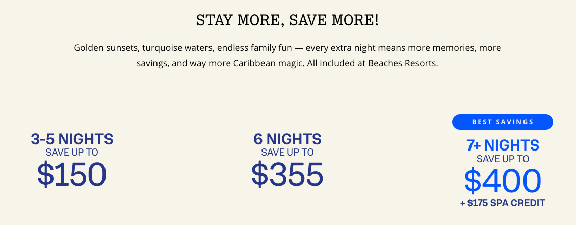 Beaches Stay More Save More Sale!